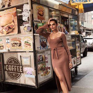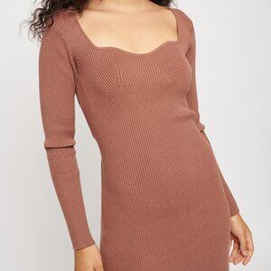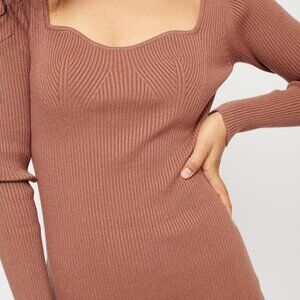 Beautiful brown, ribbed, sweater dress by Dynamite. Perfect for fall and winter!