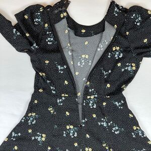 NWT Dynamite Crew Neck Flare Dress Long Sleeved Black Floral Women's Size Small