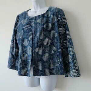 NWT EILEEN FISHER Indigo Hand Printed Cotton 3/4 Sleeve Open Jacket Medium, XL