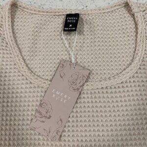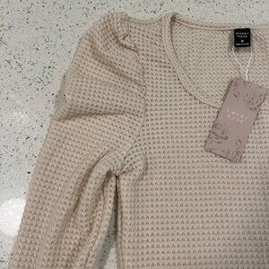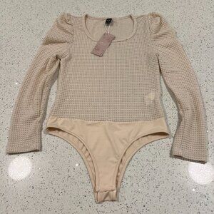 NWT EMERY ROSE Bodysuit Cream Sweater Puffed Shoulders Women's Size Medium