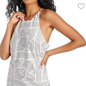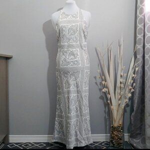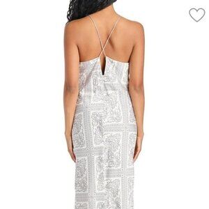 NWT EN SAISON White and gray, paisley print, sleeveless, round neckline, crisscross back, concealed back zipper, all lined, satin midi/maxi dress, size small. Great light and soft fabric, no stretch to it. Beautiful, fashion foward and versatile dress. Can easily be dressed up or down!! Please don't hesitate to ask if you have any questions! Measurements: