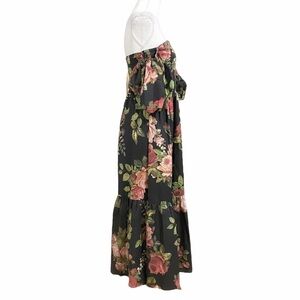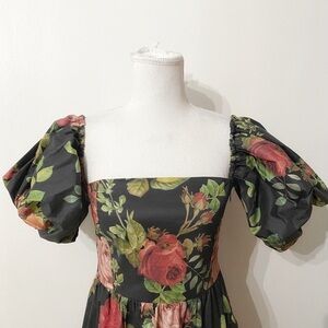 NWT ANTHROPOLOGIE ESPECIA VL-LILY BLACK FLORAL PUFFY PEASANT SHORT SLEEVE TIERED MAXI BOHEMIAN DRESS, A black pink romantic bohemian floral maxi dress featuring a square neckline with very puffy peasant yet modern sleeves with elastic hem - side zipper fastening - tiered skirt - unlined - very lightweight, paper feel - spring and summer formal to casual day to night versatile go to dress for first date, wedding, baby shower and more. Trendy and timeless.