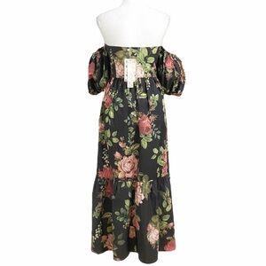 NWT ESPECIA VL-LILY BLACK FLORAL PUFFY PEASANT SHORT SLEEVE TIERED MAXI DRESS