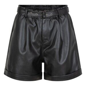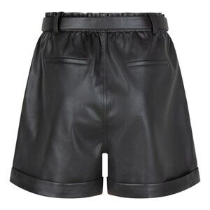 NWT ESQUALO Faux Leather Black High-Waisted Belted Shorts