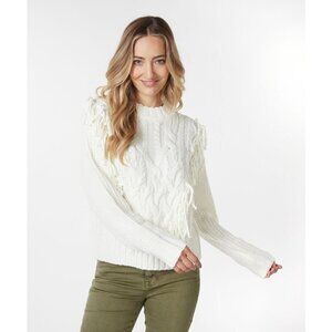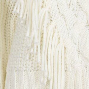 NWT ESQUALO White Fringe Cable Knit Sweater