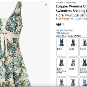 NWT Ecupper Womens One Piece Swimdress Shaping Body Swimsuit Floral Size 4X