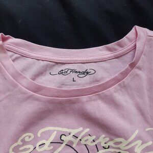 NWT Ed Hardy pink mini dress or top, stones all over the design, size large but fits more like a medium so listing as medium, pit to pit 17.5 and total lengh 31", NO LOW BALL OFFERS!