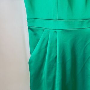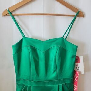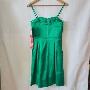 This elegant green dress is perfect for any occasion. Its vibrant color adds a touch of sophistication to your wardrobe. Sweetheart neckline, adjustable straps, 2 secret pockets, flattering pleated dart hips structure, centre line back hem split, soft lined bodycon bodice, 15" Pit to pit, 14" Waist, 19" Hip, 29" Pit to hem length. Brand new with tags.