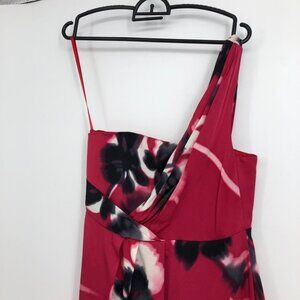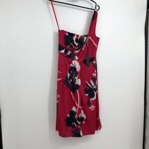 NWT Elie Tahari Farla Silk hot pink / chilli red 1 shoulder floral dress size 4