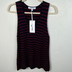 A soft knit with a chic nautical look. 45% wool, 30% viscose, 15% nylon and 10% cashmere. Scoop neck with front tie closure. Dry clean. Sleeveless. Navy and red striped. Brand new with tags! No flaws. Retails for $195 USD.