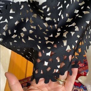 Brand new with tags gorgeous black & white sleeveless shear dress from Elle by RW & Co. beautiful bold floral print and wonderful laser cut detailing at hem.