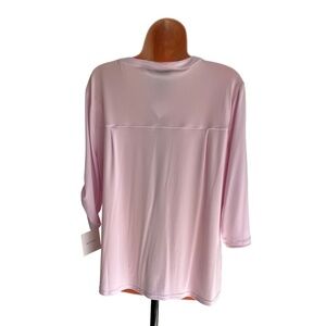 Classic Pale Pink blouse by Ellen Tracy with 3/4 sleeves and 2 Breast pockets. The sleeves can also be raised with the tab and Gold button.