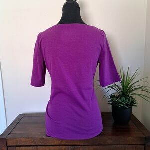 ❤️ NWT Ellen Tracy Short Sleeved Tee Purple Women's Small Elbow Sleeve Boatneck