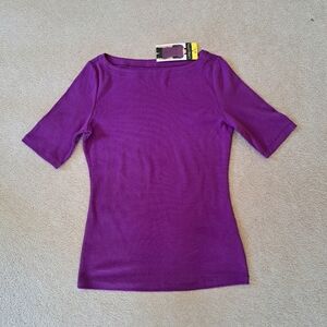 NWT Ellen Tracy Short Sleeved Tee Purple Women's Small Elbow Sleeve Boatneck