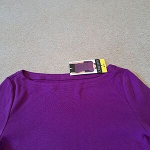 NWT Ellen Tracy Short Sleeved Tee Purple Women's Small Elbow Sleeve Boatneck