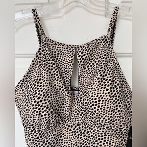 NWT Ellen Tracy Wheat Dot Print Ruched Tankini Top 8