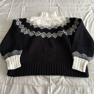 Brand new with tags! This Eloquii turtleneck sweater is the perfect mix of cozy and chic, featuring a bold black-and-white fair isle pattern. Chunky knit design with a ribbed high neckline makes it a timeless winter essential.