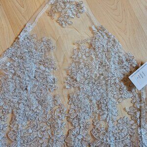 Tie at back of neck & zip back. Sheer top with embellished details, NWT