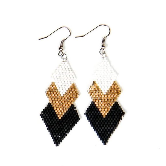 These beautiful Medellín earrings will take your look from basic to bae! Lush layers of white, gold, and midnight black Miyuki beads add a luxurious pop of color and texture. Crafted with care by hand, they're the perfect city chic accessory!