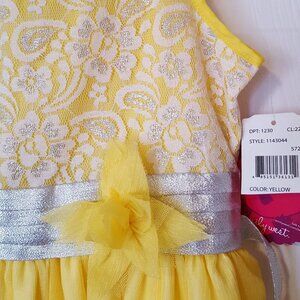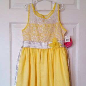 NWT Emily West Girls Summer Dress ~ Sparkly Yellow and Silver ~ Sz. 10/12 ~