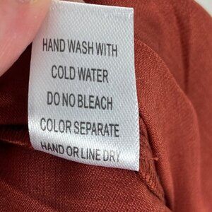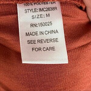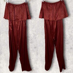 Emory Park Rust Brown Satin Ruffle Top Jumpsuit in Women's Size Medium. Strapless off-shoulder style with straight legs. Poly. Hand wash. Made in China. Brand new with tags! No flaws.