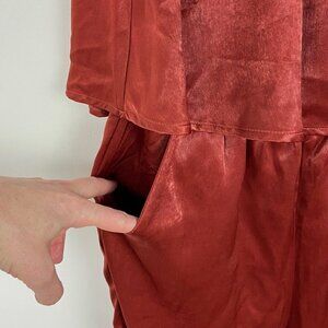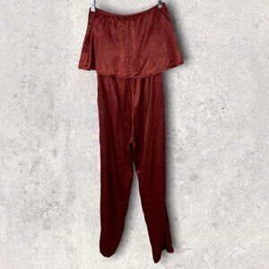 NWT Emory Park Burnt Rust Ruffle Strapless Jumpsuit Satin Red Brown Size Medium