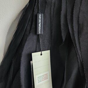 Emporio Armani, skirt, mini skirt, silk, organza, tulle, black, noir, sheer, semi-sheer, layered, sculptural, airy, lightweight, glam, glamour, glamorous, sexy, festive, evening, cocktail, party, chic, elegant, Italian, designer, luxury, luxe, premium, high-end, elevated, refined, striking, outstanding, occasion, night out, dressy, versatile, flirty, NWT, BNWT, new, never worn, feminine, Holidays, Christmas, xmas, New Year's Eve, distinctive