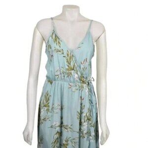 NWT Entro Floral Maxi Dress Blue Sleeveless Faux Wrap Rayon Size Large
