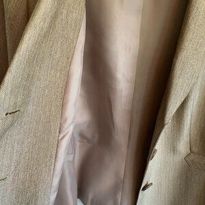 This Evan-Picone Pant Suit exudes a classic and professional aesthetic. The ensemble includes a beautifully tailored jacket and matching pants, both designed to enhance your formal and business wardrobe. In a versatile beige with a subtle chevron pattern, this suit is ideal for a range of occasions, from weddings to business meetings. The jacket features a flattering shawl collar and a three-button front, complemented by a two-button sleeve style, ensuring a polished and sharp silhouette.The suit is constructed from a high-quality polyester blend fabric, ensuring both comfort and durability. Both pieces come fully lined for an impeccable fit and a sleek appearance. The pants have a 31-inch inseam and a size 42-inch waist, while the jacket boasts a regular size 46-inch chest and a standard length, marrying a sophisticated look with practicality. Designed for ease of care, this suit requires dry cleaning, preserving its elegance for many occasions to come.