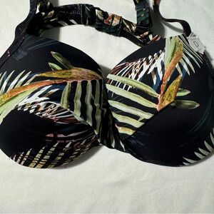 NWT Everyday Sunday Bikini Top Midnight Multi Colour Palm Size 6 D Cup