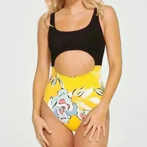 NWT Everyday Sunday Cut out Black/Yellow Floral One piece - Plus Size 3X