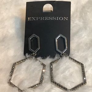 NWT Expression Women’s Silver Tine Rhinestone Earrings. One Size, Pierced Earrings.