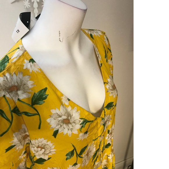 NWT F21 Forever 21+ PLUS SIZE Sunflower Dress Yellow Green White Floral photo