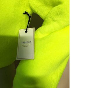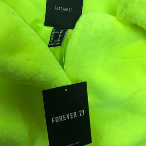 NWT F21 Forever Teddy Plush Fur Jacket Coat Neon Yellow Lime Green Cozy Soft