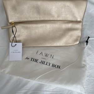 NWT FAWN DESIGN Jillian Harris Gold Foldover Clutch purse The Jilly Box