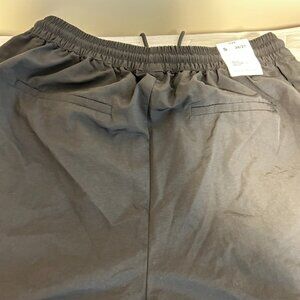 Has side and back pockets. Elastic adjustment at bottom so pants will never be too long.