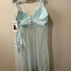 NWT FLORA NIKROOZ BABY BLUE BABYDOLL LINGERIE SET L
