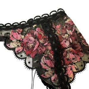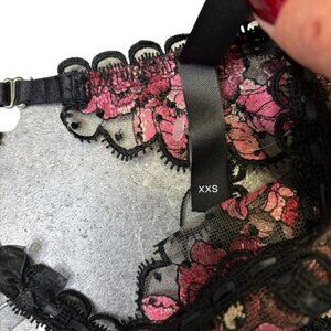 NWT FOR LOVE & LEMONS Juliet Floral Black/Pink Lace Garter Size XXS Lingerie