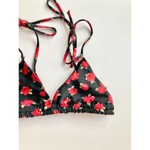 NWT FOREVER 21 Black Red Rose Floral Print Triangle Bikini Top, Size S