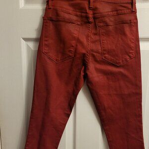 This pair of jeans is a rich, deep, ruby red.