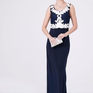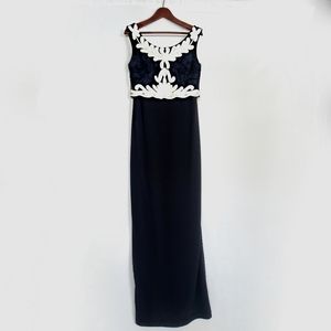 NWT FRANK LYMAN EMBROYDERED MAXI BACK ZIP SLEEVELESS LINED US6 NAVY IVORY GOWN