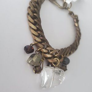 NWT * FREDRICK PRINCE Brass Cuban Chain Charm Bracelet Chunky Glass Stone Beads