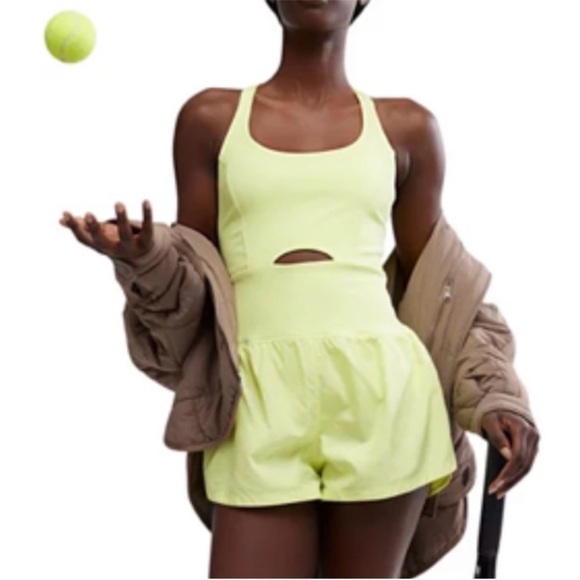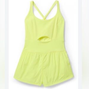 The perfect one-and-done running outfit, this easy romper features a slim-fitting top with a cooling cutout at the center paired with airy retro-style shorts.