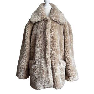 NWT FREE PEOPLE PRETTY PERFECT FAUX FUR COAT IN CREAM TEA - S