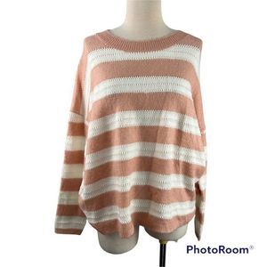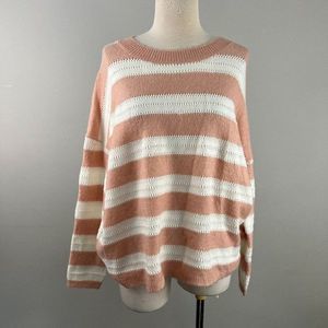 NWT FRNCH Ivory Pink Chunky Striped Crew Neck Sweater (S/M)