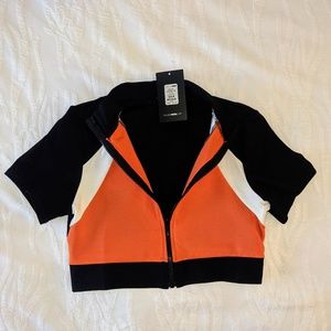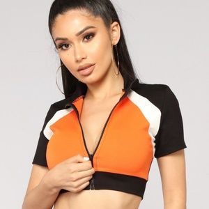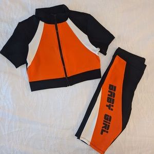 2 Piece color blocked, Black and Orange Biker Set