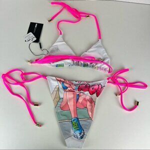 NWT - Fashion Nova,Nights in Shibuya 2 pc Bikini. Size: M.Color:Pink/Multicolour