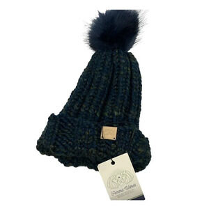 NWT Femme Wares Marled Knit Pom Pom Crochet Knit Blue Toque Beanie