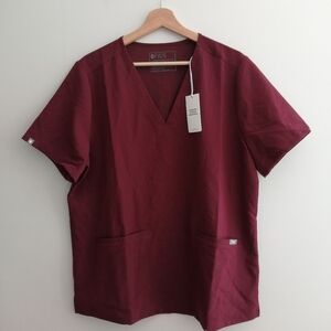 NWT Figs Casma 3 Pocket Short Sleeve Scrub Top Burgundy XL