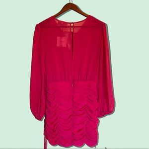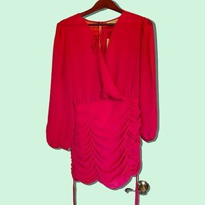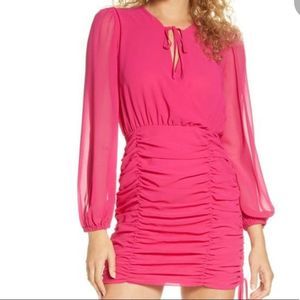 NWT Finders Keepers - Fuchsia Pink Pia Dress Rouched Long-Sleeve Minidress - M